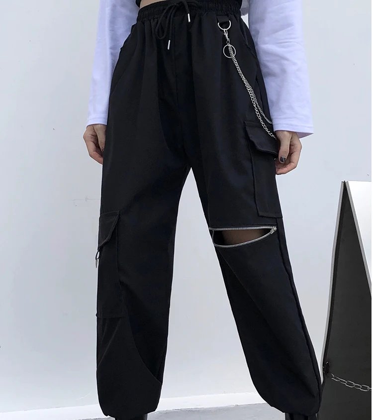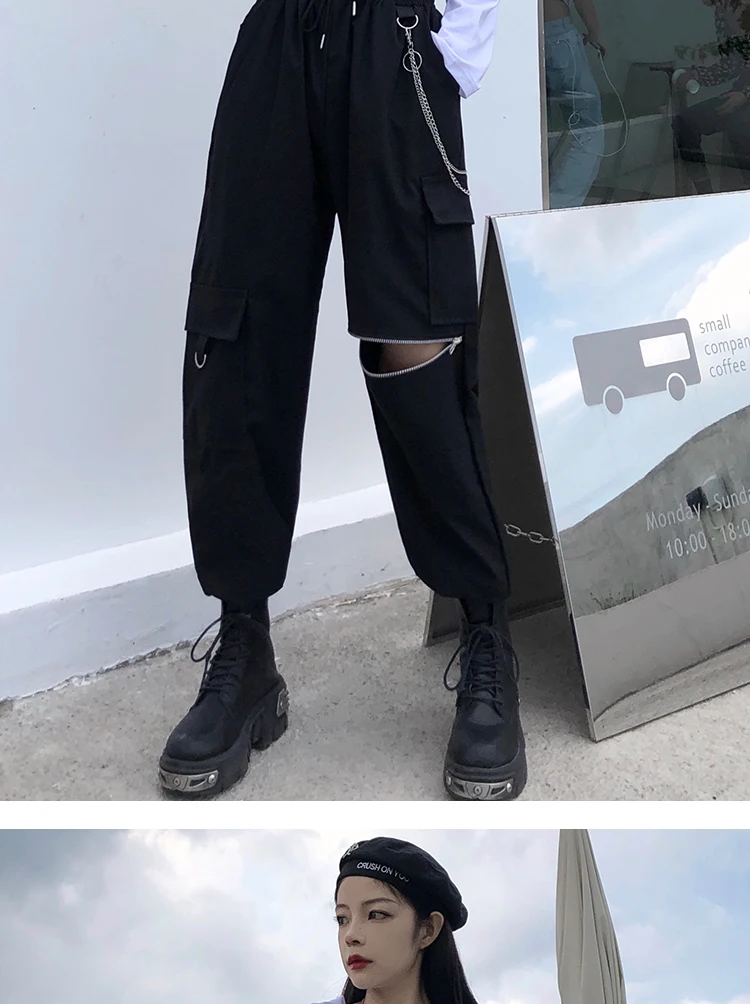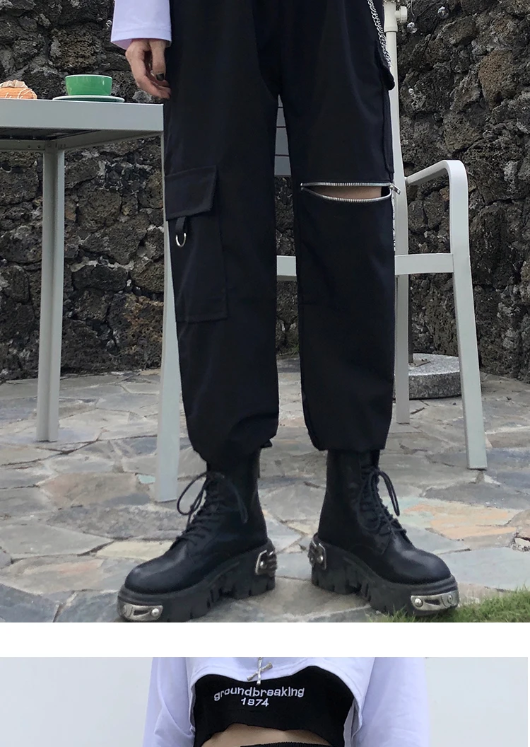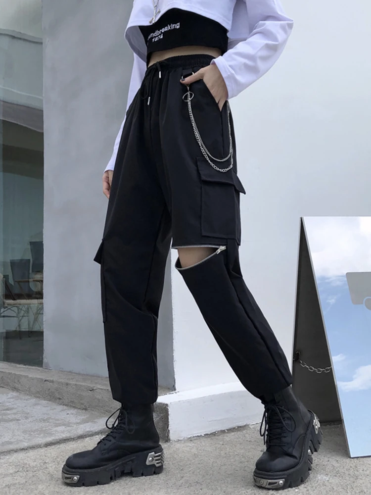 2025 Fashion Jogger 3 Piece Sets Women New High Waist Cargo Pants with Chain Streetwear Casual Hip Hop Long Sleeve Crop Tops