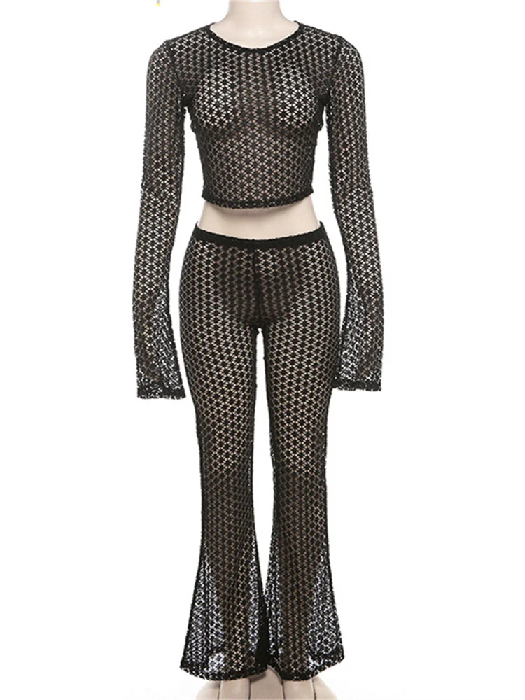 1. Pair the crop top with the high waist pants for a cohesive look.