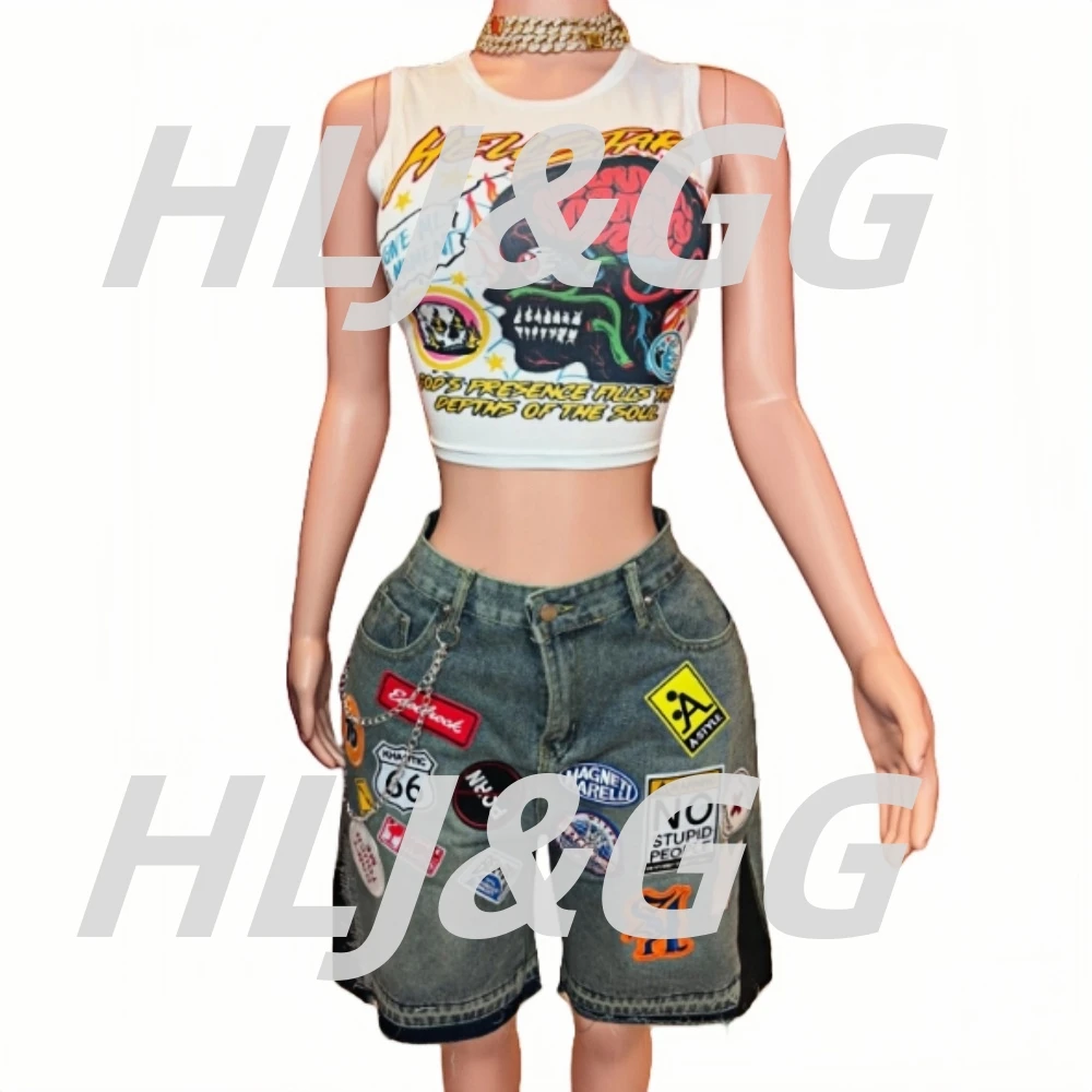 π What is it - This chic two-piece set features a sleeveless slim tank top paired with stylish denim shorts adorned with trendy graffiti lettering. Perfect for those who want to make a statement!