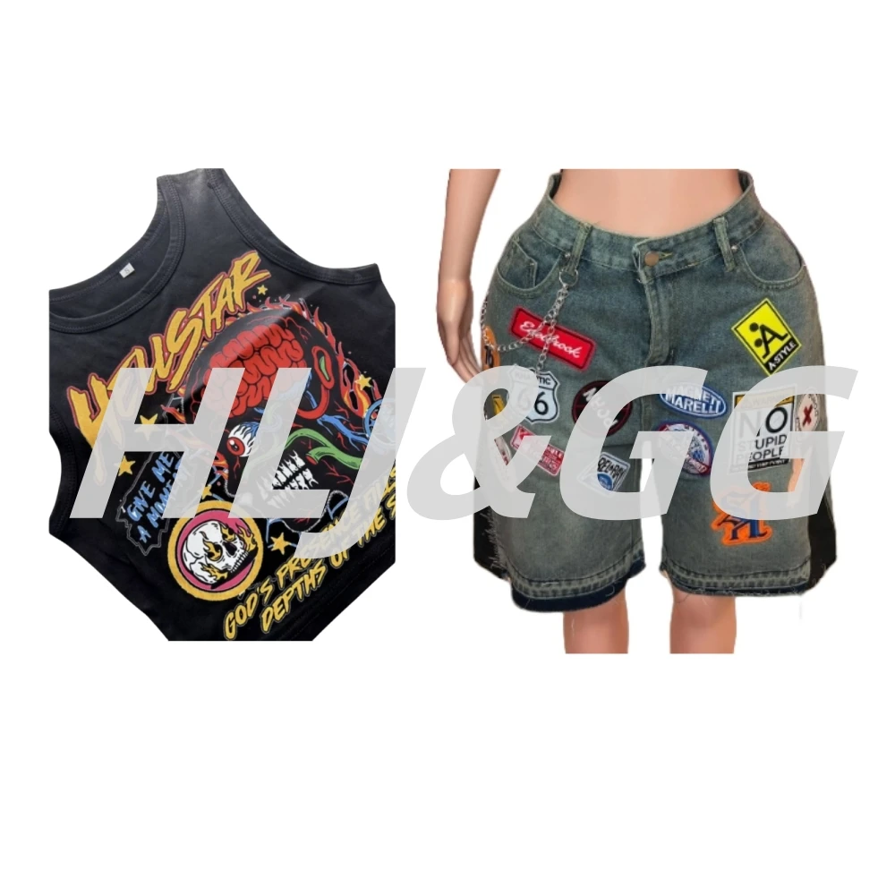 β¨ Step into style with our Trendy Graffiti Jean Shorts & Tank Set - the ultimate streetwear duo designed for every fashion-forward woman!