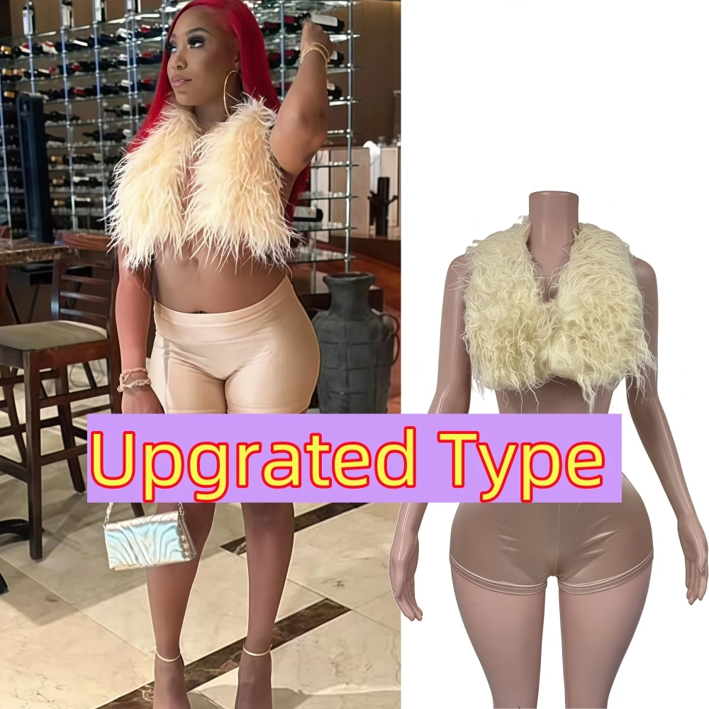 👉 What is it - Embrace the Y2K vibe with the exclusive HLJ&GG Fashion Fur Hollow Out Streetwear set, featuring a sleeveless slim crop top paired with matching shorts. This 2-piece outfit is perfect for making a statement wherever you go.